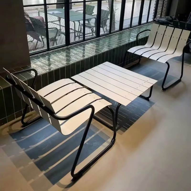 屋外のテーブルと椅子の組み合わせ庭園の露天レジャーシンプルなミルクティー店の喫茶店の別荘のベランダのテーブルと椅子の組み合わせは決められます。