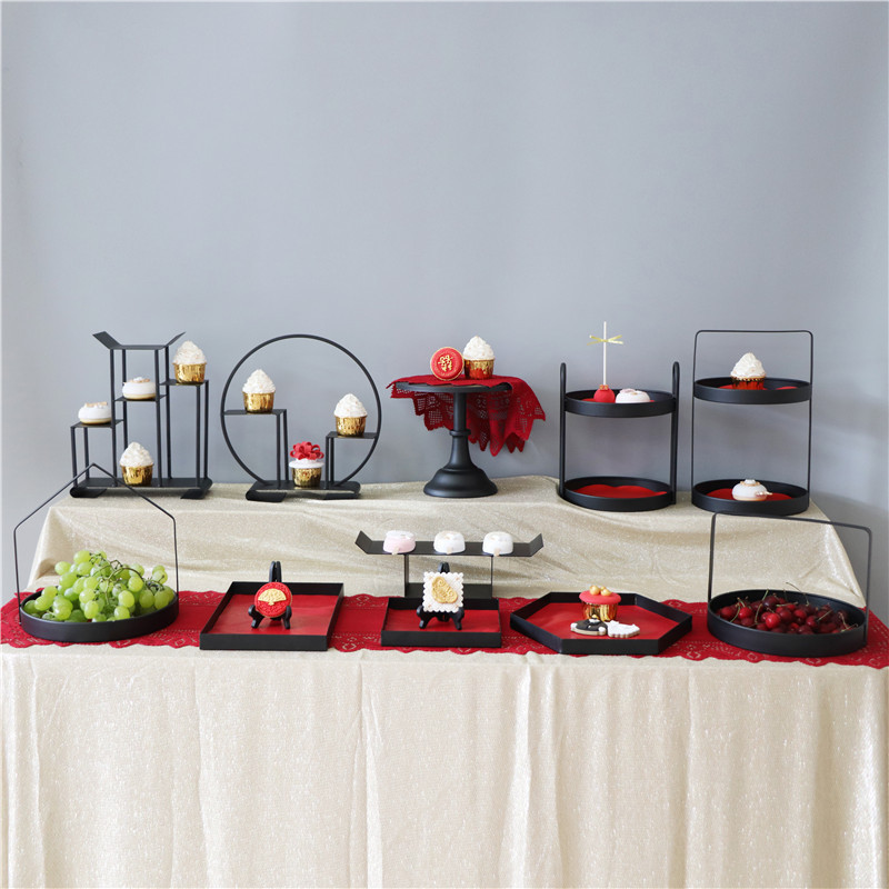 中国式の結婚式のデザート台の置物の展示棚のケーキの皿の家庭の中国風の柔らかい装飾品の収納棚