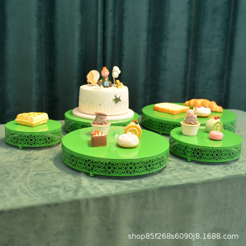 ヨーロッパ風の創意的な緑のケーキ棚の結婚祝いの道具のデザート台の置物の透かし彫りの焙煎のお菓子棚の5つのセットの組み合わせ