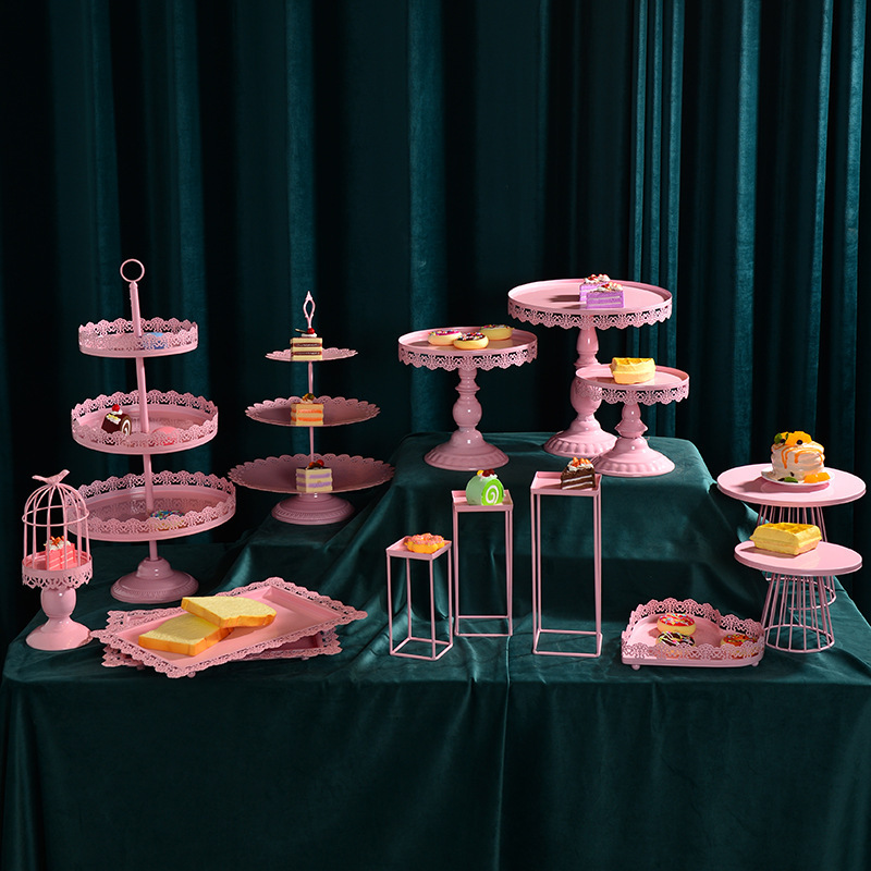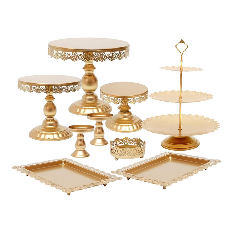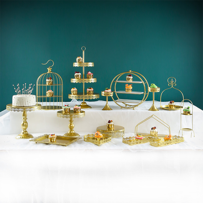国境を越えた金色の鉄芸ケーキ棚菓子棚セット午後茶スイーツ棚菓子棚展示棚高脚トレイ