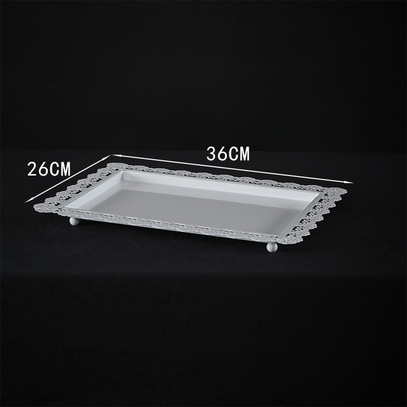 ヨーロッパ式のトレーの長方形の西の点の皿の鉄の芸のケーキの皿のデザートの展示の四角い皿のレースの辺のお茶の皿の白い平たい皿
