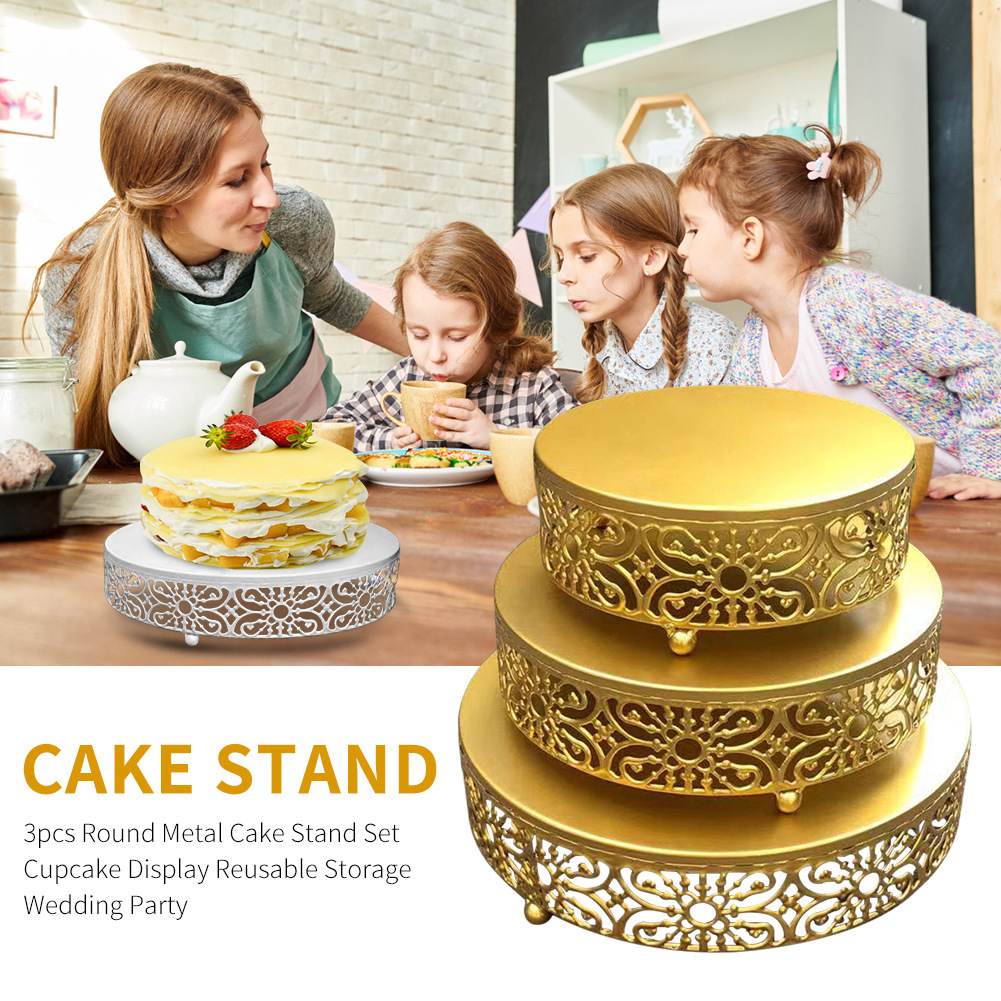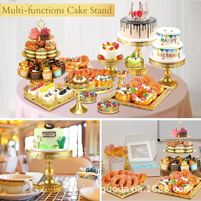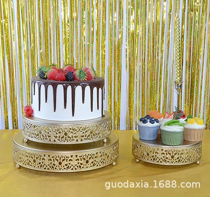 金色ケーキスタンドセット金属ケーキデザート展示テーブル円形紙コップケーキベースパーティー家庭装飾