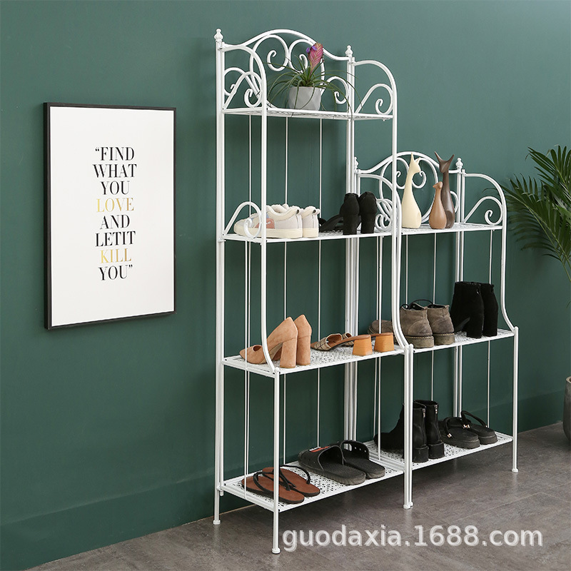 学校の寮の小さい部屋型の客間の靴棚のヨーロッパ式の簡易な多層の靴棚の家庭の玄関のアイデアの鉄芸の小さい靴棚