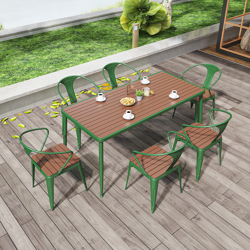 屋外の庭の露天のテーブルと椅子の組み合わせ屋外の露店の花園のベランダの日焼け止めの公園のレジャーの鉄の芸のプラスチックの木の長いテーブル