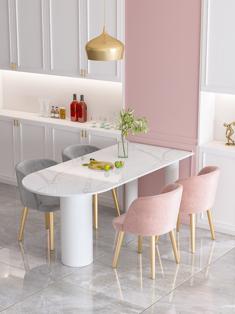 岩板島台食卓軽豪華現代楕円形北欧シンプルネット赤食卓椅子セット家庭用小戸型