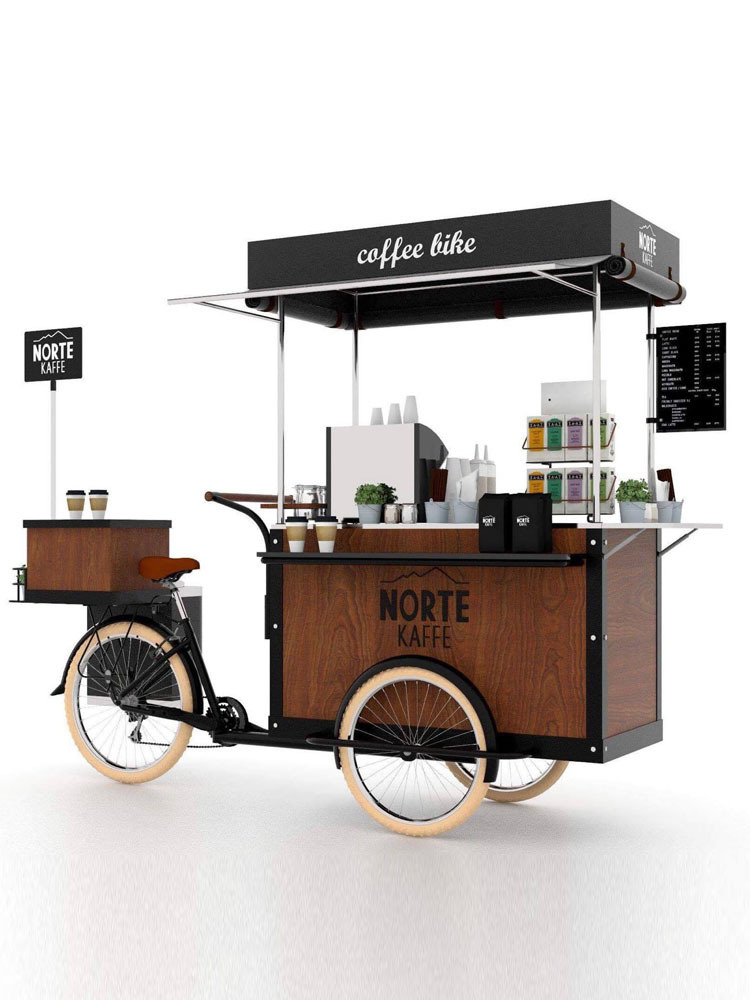 三輪自転車に乗って軽食デパートのコーヒー車ミルクティーを並べることができます。