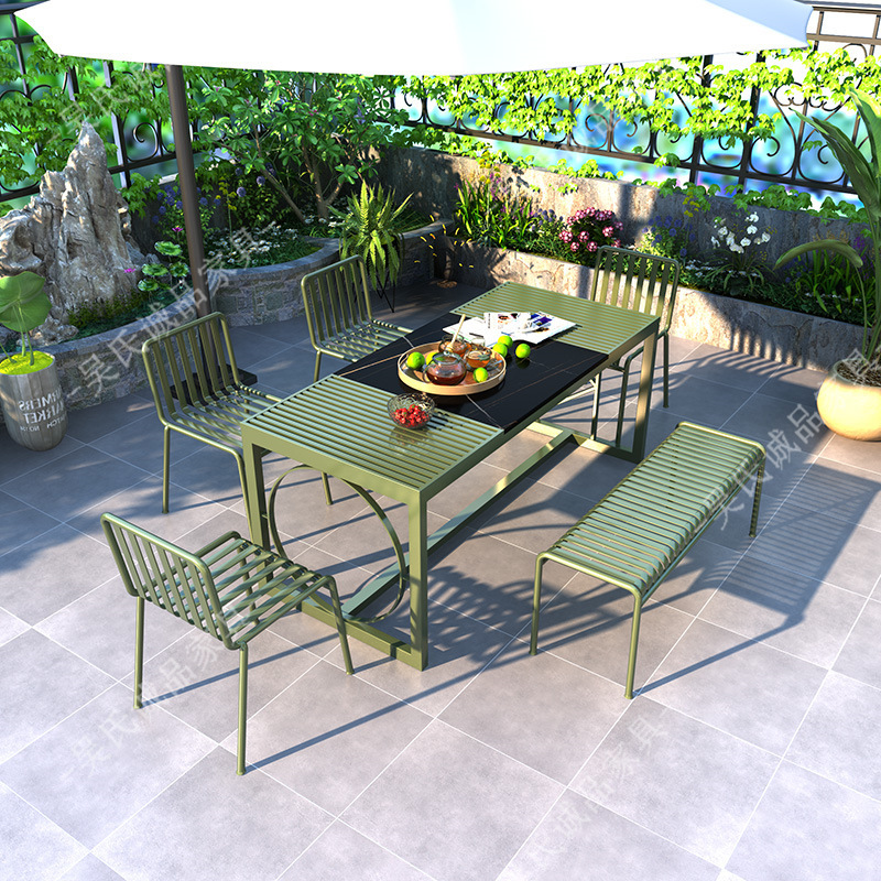岩板屋外防腐テーブルと椅子の組み合わせ庭園田園室外鉄芸露天椅子露店茶卓花園テーブルと椅子