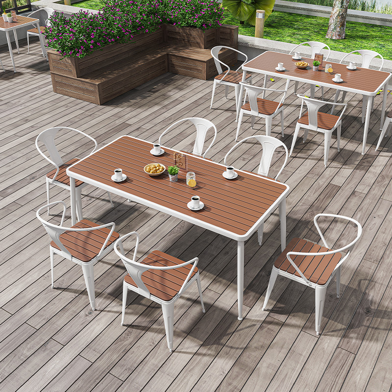 屋外の庭の露天のテーブルと椅子の組み合わせ屋外の露店の花園のベランダの日焼け止めの公園のレジャーの鉄の芸のプラスチックの木の長いテーブル