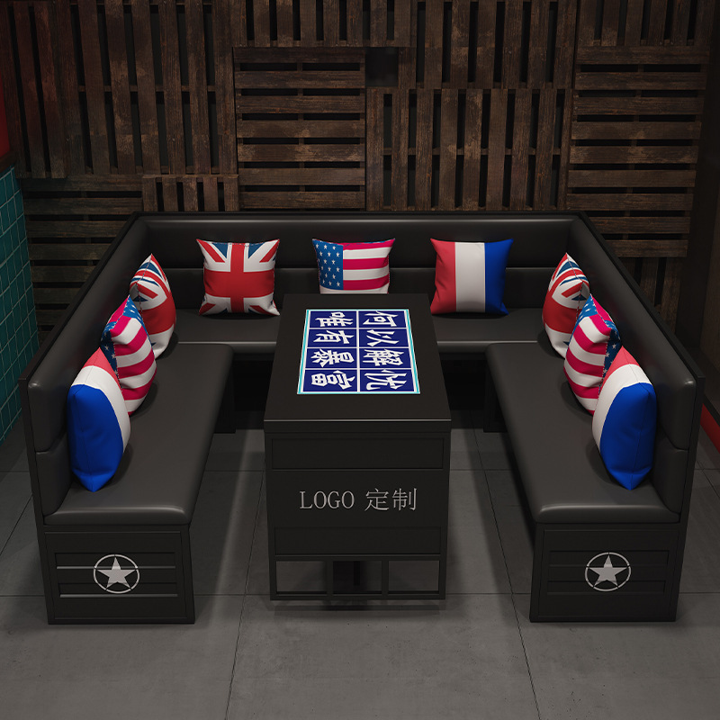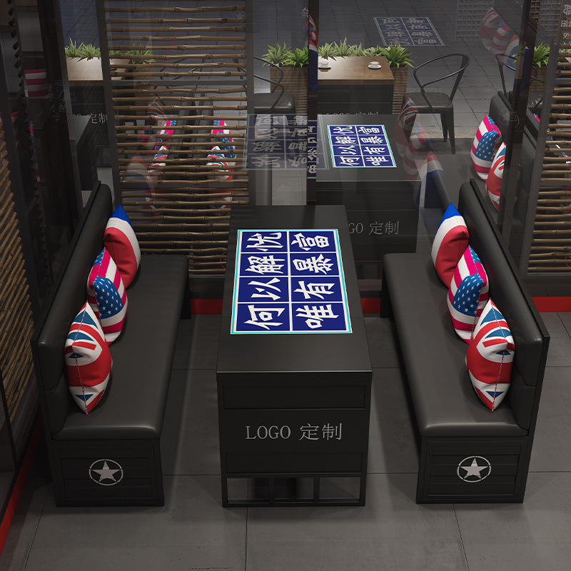 工業風カード座ソファー商用居酒屋レストランのテーブルと椅子の組み合わせ軽食店のデザートミルクティーの実木テーブル