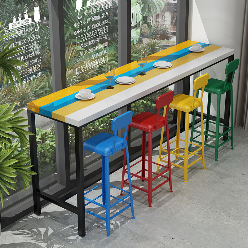 カラーバーのテーブルの鉄芸の木の長いテーブルのミルクティーの喫茶店のバーのテーブルと椅子の家庭用の壁の高いテーブル