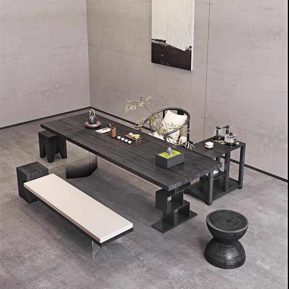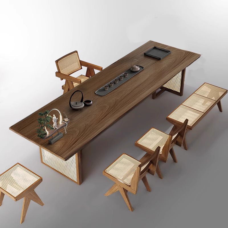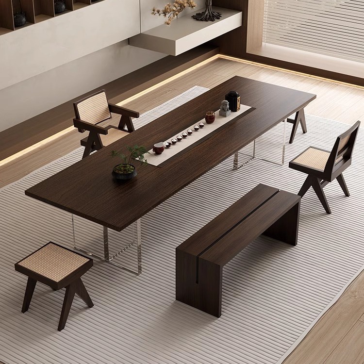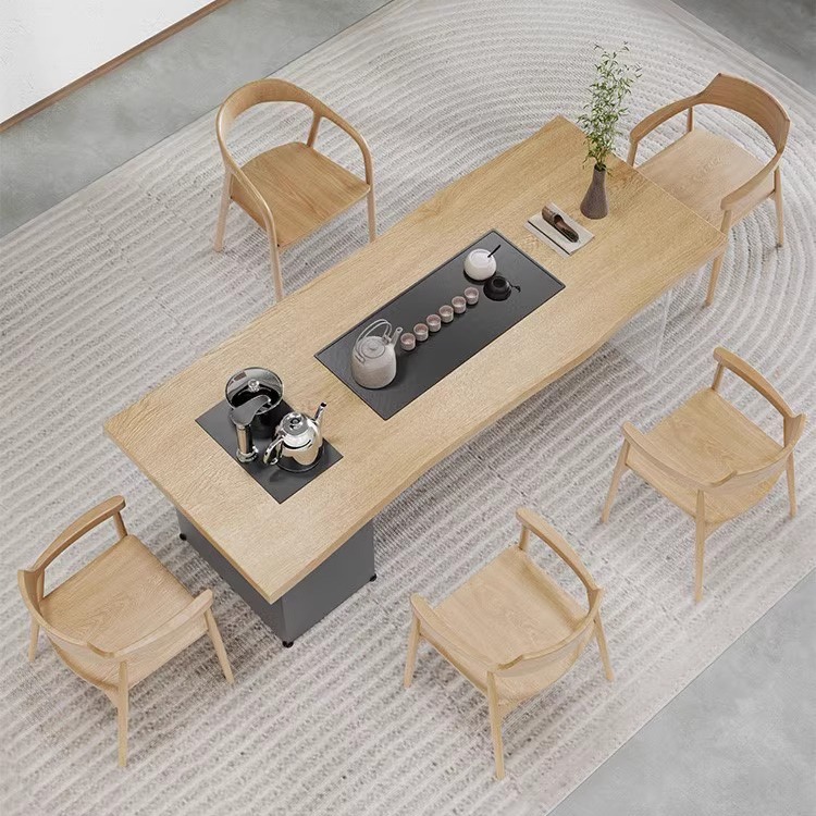 寂風大板茶台実木茶テーブルと椅子の組み合わせ事務会議の湯たんぽ一体物を貯蔵してお茶のテーブルを入れる