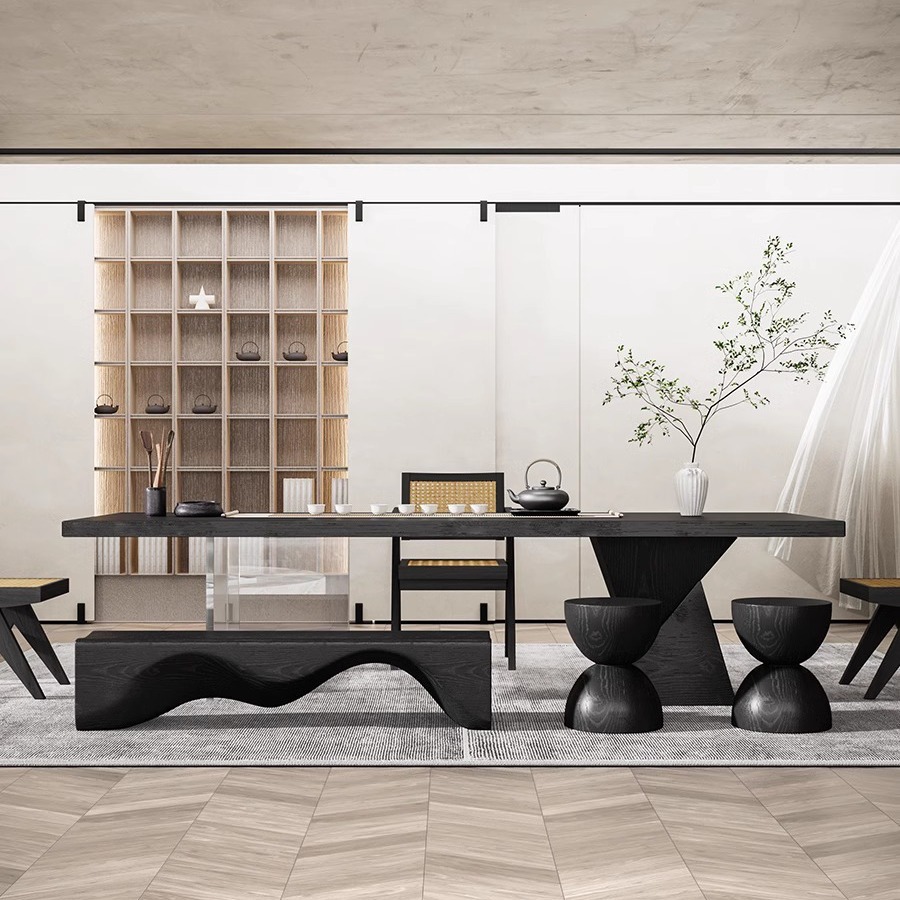 寂風実木茶テーブルと椅子の組み合わせ茶室オフィス茶台アクリル炭化黒白蝋木泡茶テーブル