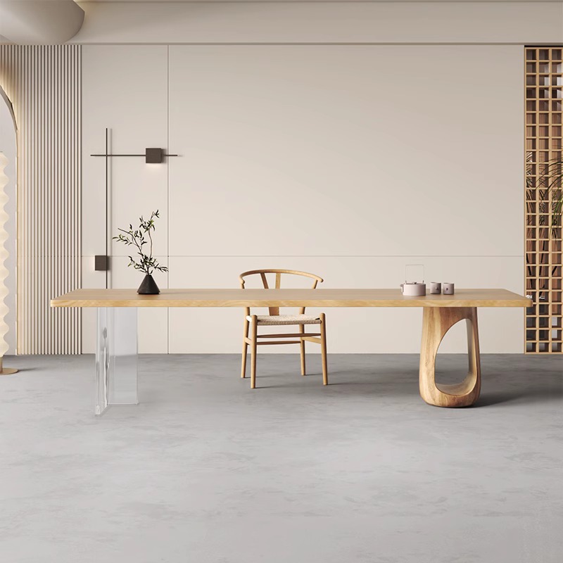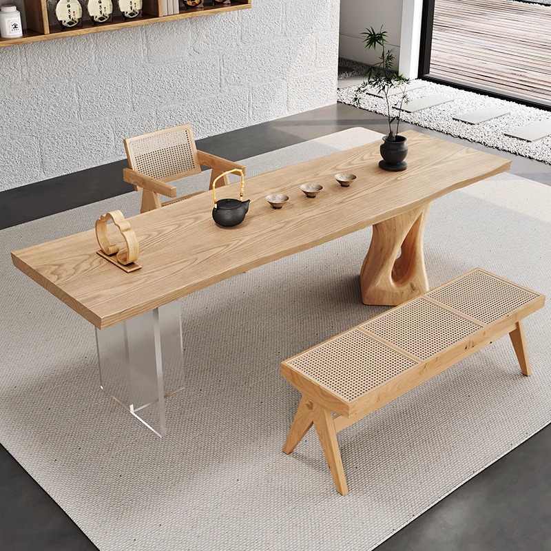 寂風実木茶卓現代禅意白蝋木家庭用オフィステーブル原木茶何亜格力レジャーテーブル