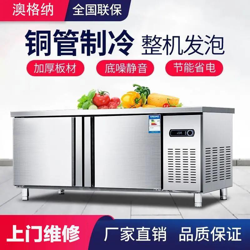 業務用冷凍冷蔵操作台冷凍庫キッチンステンレス鋼フラットコールド作業台デュアル温度ミルクティーショップウォーターバー