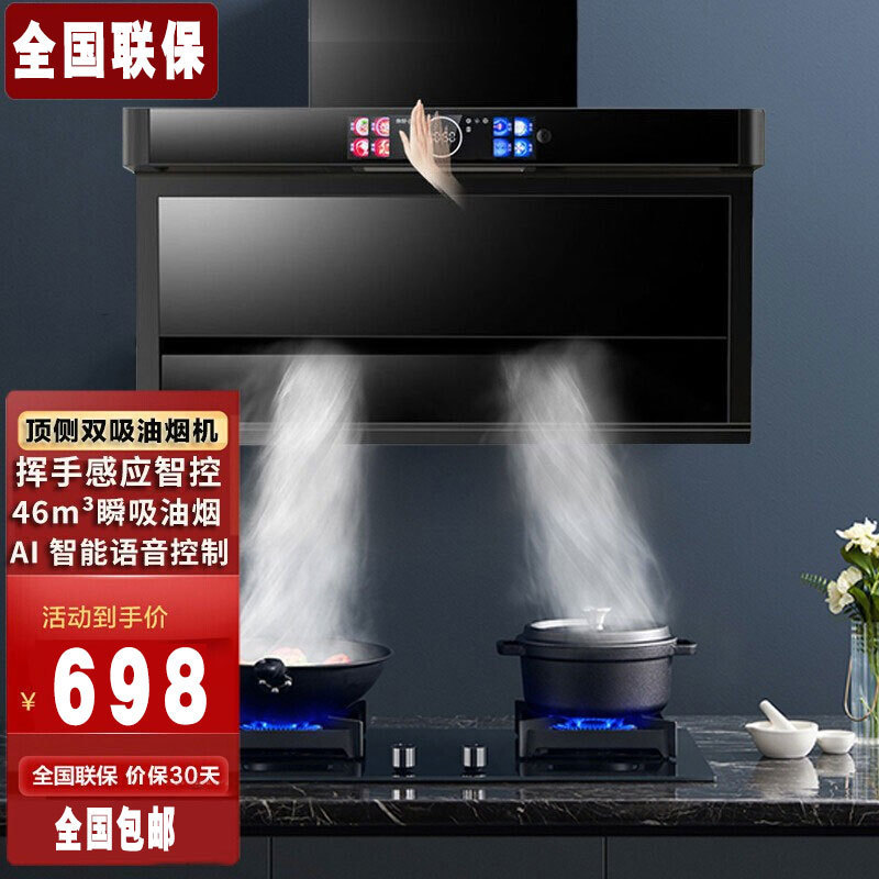 2024 新しいスタイルの愛する妻のレンジフードホームキッチン大吸引トップサイドダブル吸引レンジフードパッケージ