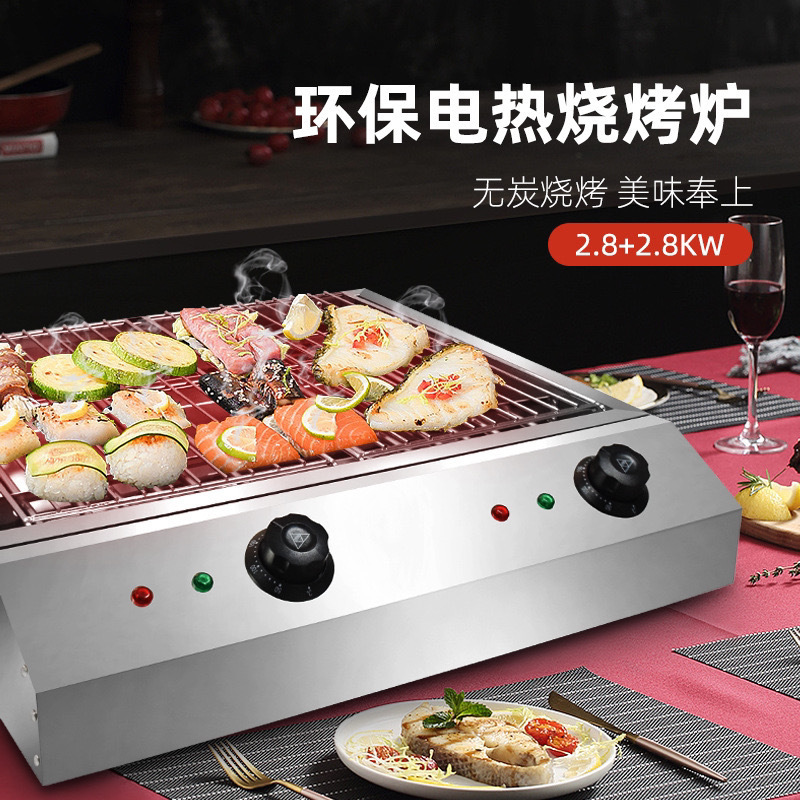 業務用電気無煙バーベキューグリル幅広バーベキューマシン牡蠣ホタテ鶏手羽先ご飯串家庭用恒温大型
