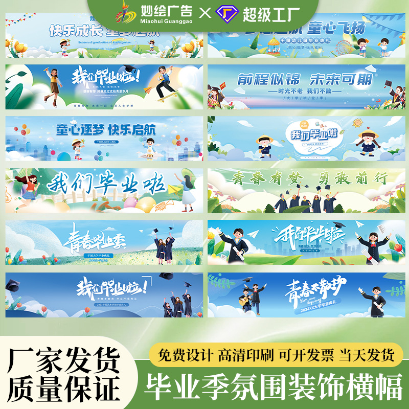 卒業シーズンのテーマバナー、キャンパス教師の装飾、イベントシーンの雰囲気、写真小道具、吊り下げ布バナー