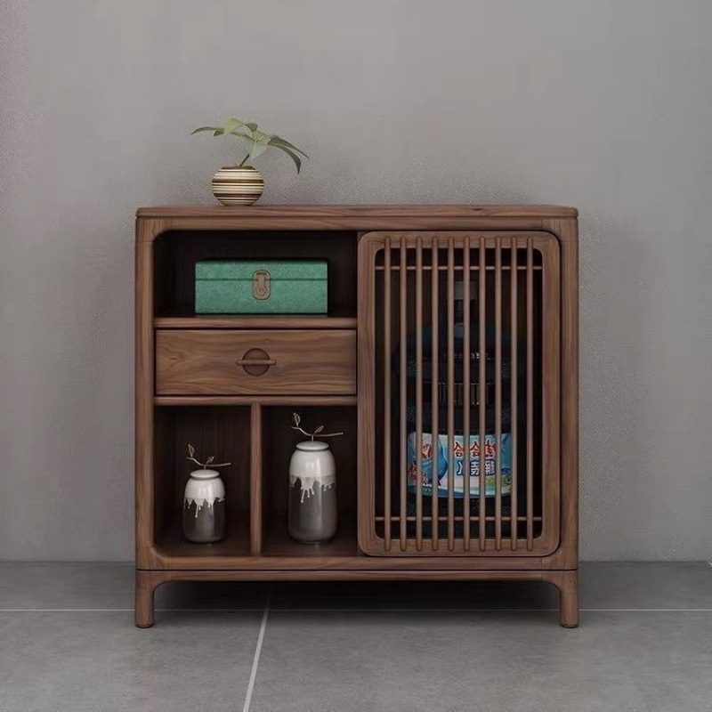 新しい中国風のティーキャビネット、モバイルティーテーブル、ホームバルコニー、小さなティーテーブル、無垢材のティーカート、ケトル、一体型ソファサイドテーブル