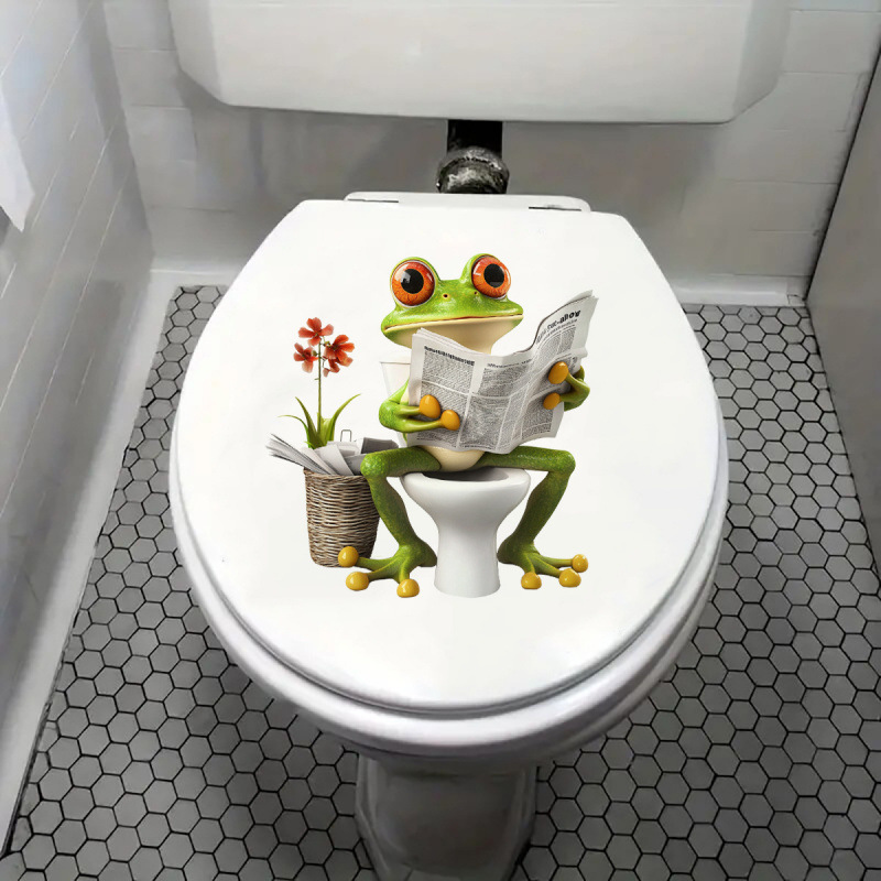 漫画シミュレーション小さなカエルの花新聞を読むトイレステッカー浴室トイレトイレステッカー漫画動物ウォールステッカー