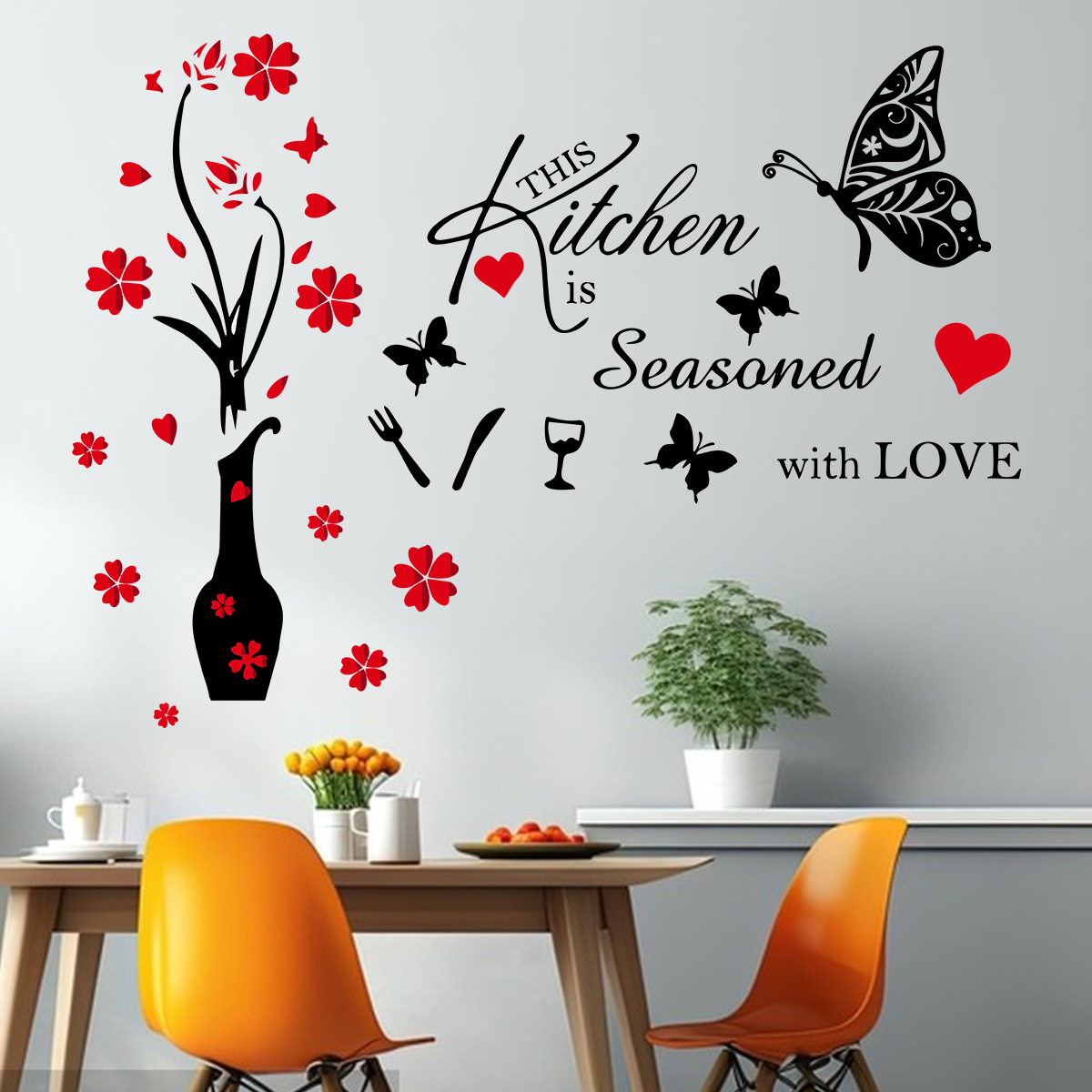 MK9140新型英語kitchen花瓶蝶キッチン壁貼りレストラン壁面装飾壁貼り絵