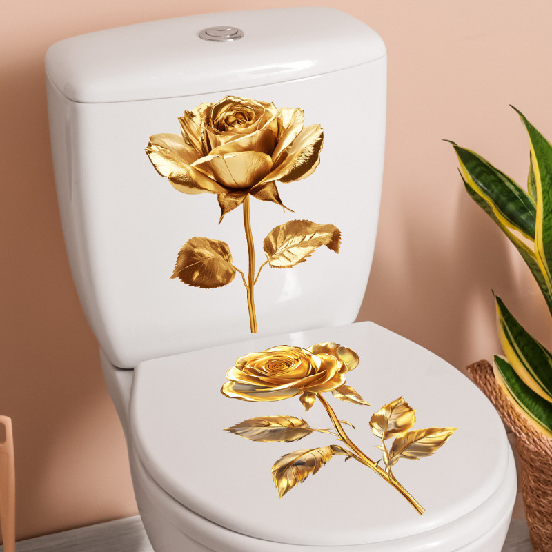 模擬黄金のバラのトイレステッカー浴室トイレ装飾ステッカー黄金の花トイレステッカー自己粘着