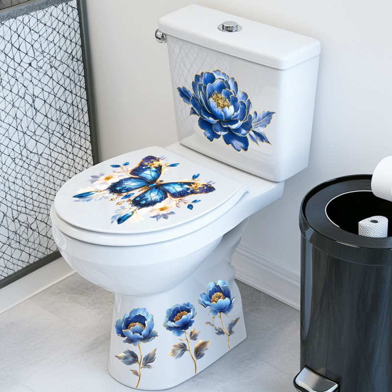 青い燃える蝶の青いバラの便器は浴室のトイレの壁面の便器の装飾のステッカーを貼り付けます。