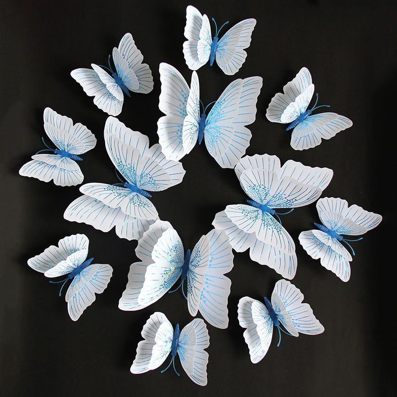 12本のストリーマ溢彩蝶装飾品3d立体シミュレーション壁面工芸品冷蔵庫の壁貼り結婚式の配置