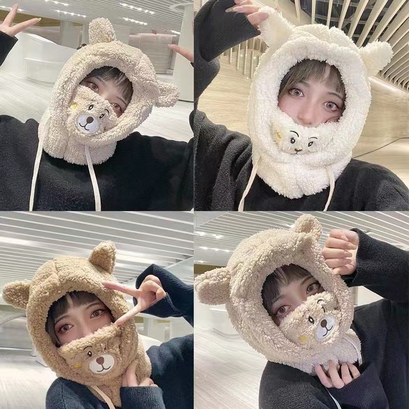 2024 新しいベルベットと厚みのあるサイクリング防風防寒帽子とスカーフオールインワン女性の冬の電気自動車暖かいプルオーバー帽子