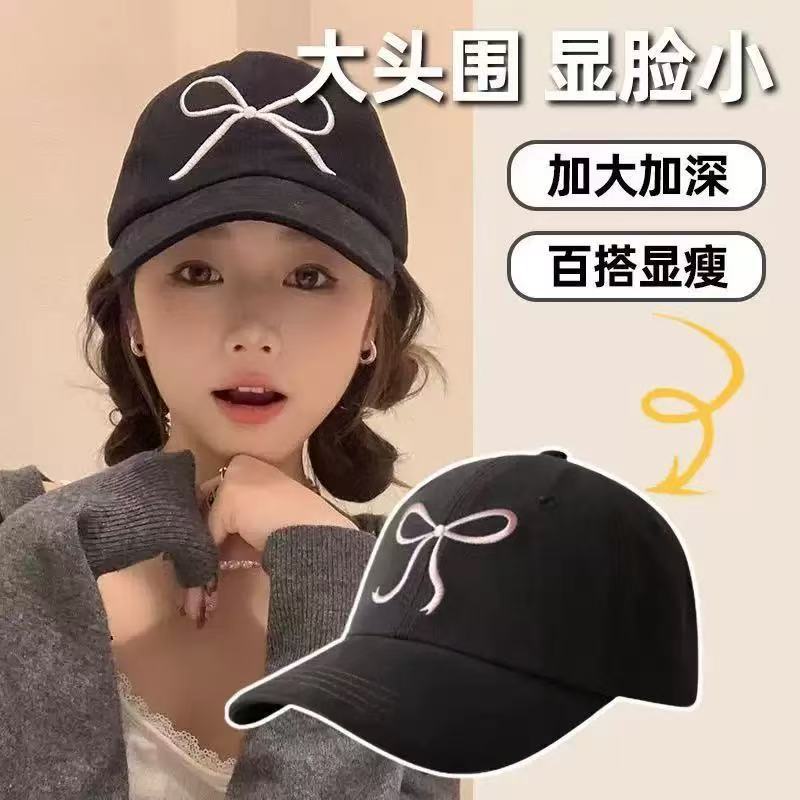 韓国ins風 ~ ピンク刺繍蝶結び野球帽女性春夏ソフトトップアヒルの舌帽子