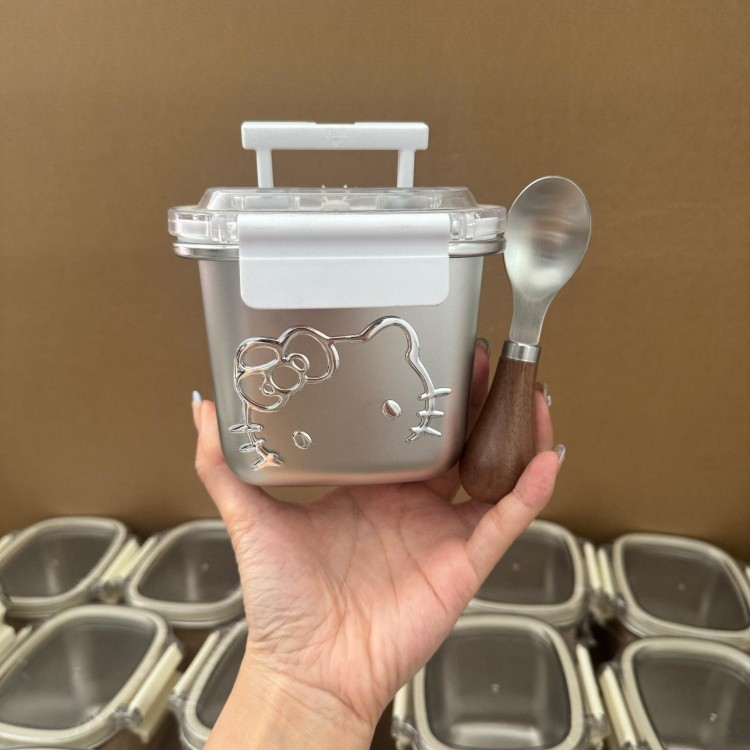 哈喽kitty保鲜盒饭盒微波炉加热304不锈钢食品级手提水果便当盒子