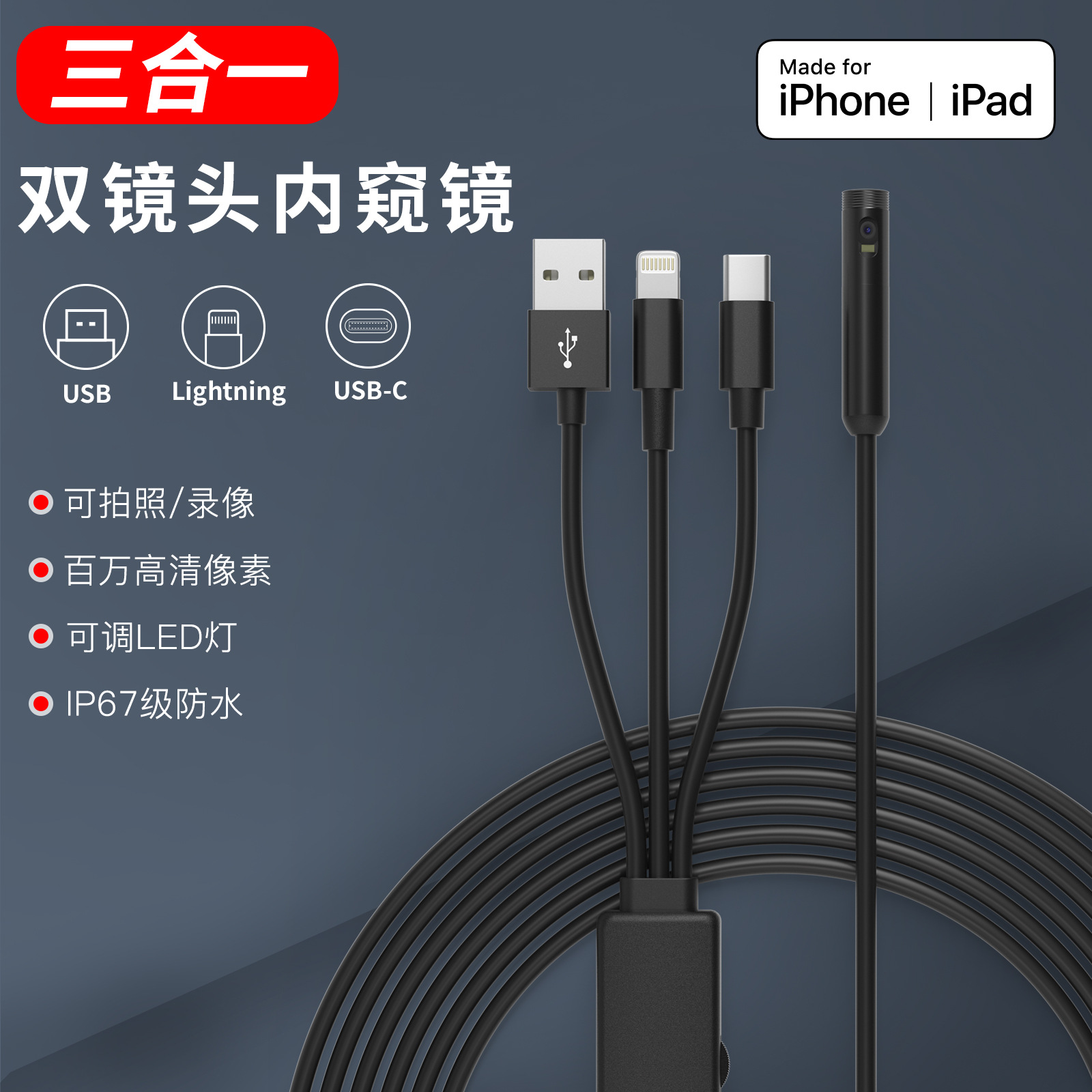 NK-5001ProS Apple Android に適した 3-in-1 携帯電話直接接続内視鏡デュアルレンズ工業用内視鏡