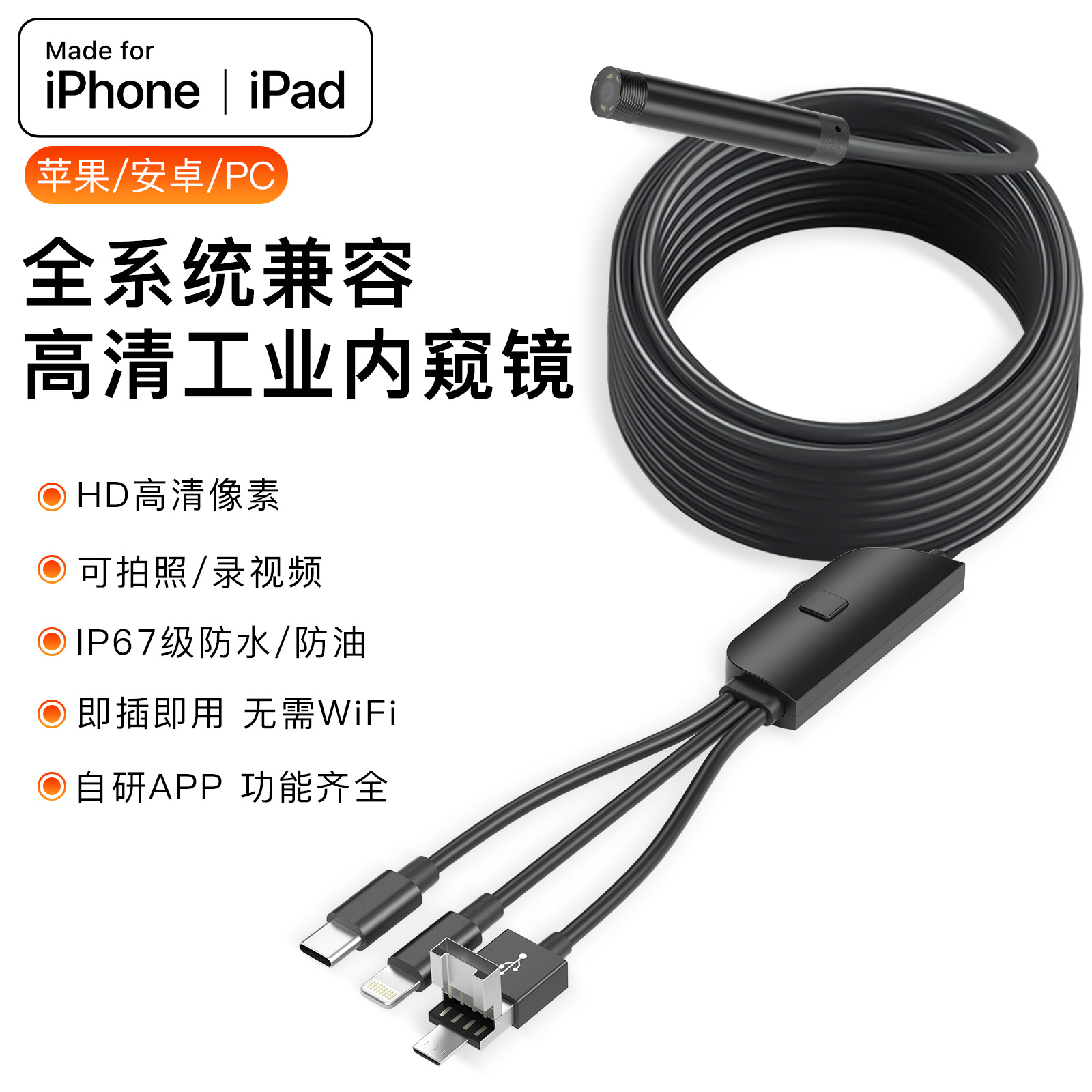 NK-5003 Apple ボアスコープ内視鏡に適したボタン付き高精細携帯電話工業用内視鏡