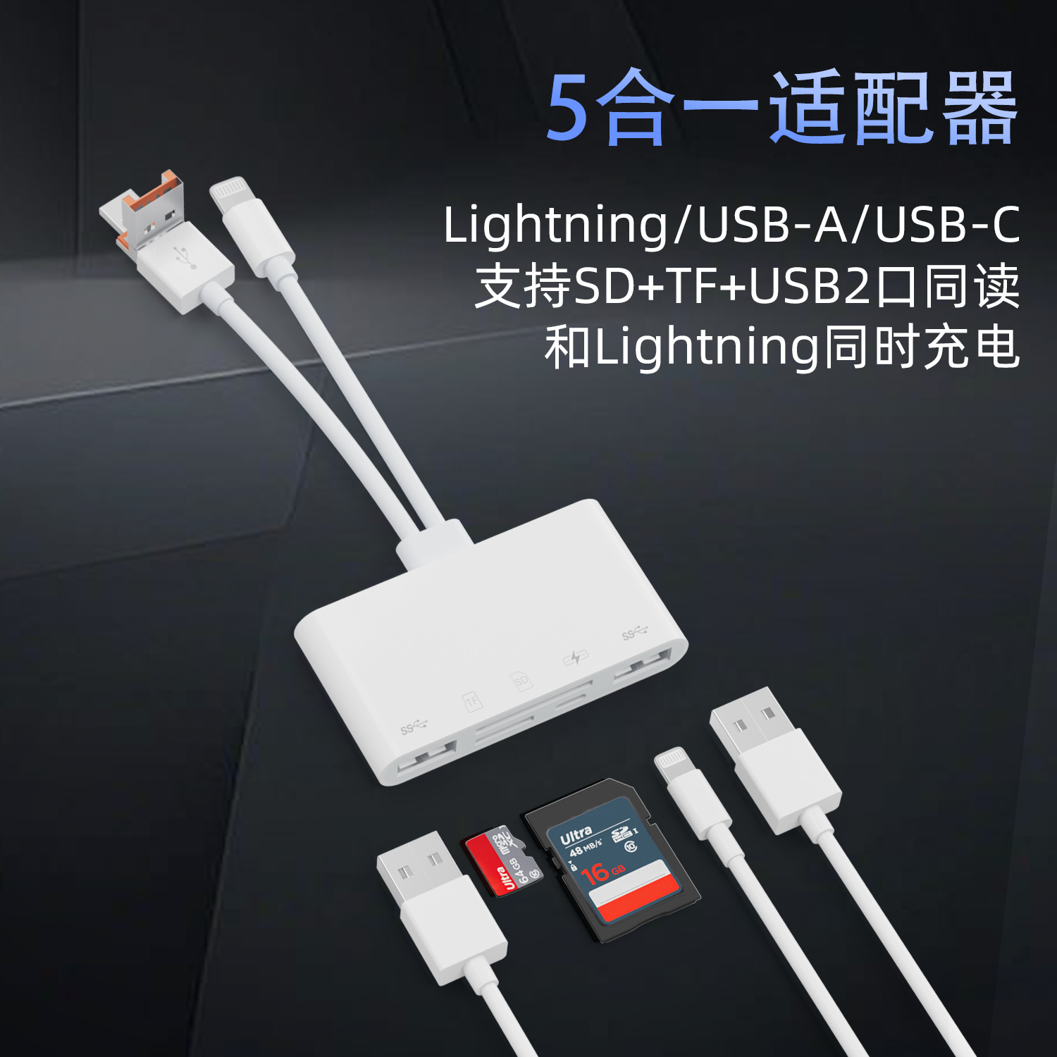 新しい二重線五合一カードリーダーSDはアップルのアンドロイドUSB携帯電話OTG転送Type-Cカードリーダーを適用している