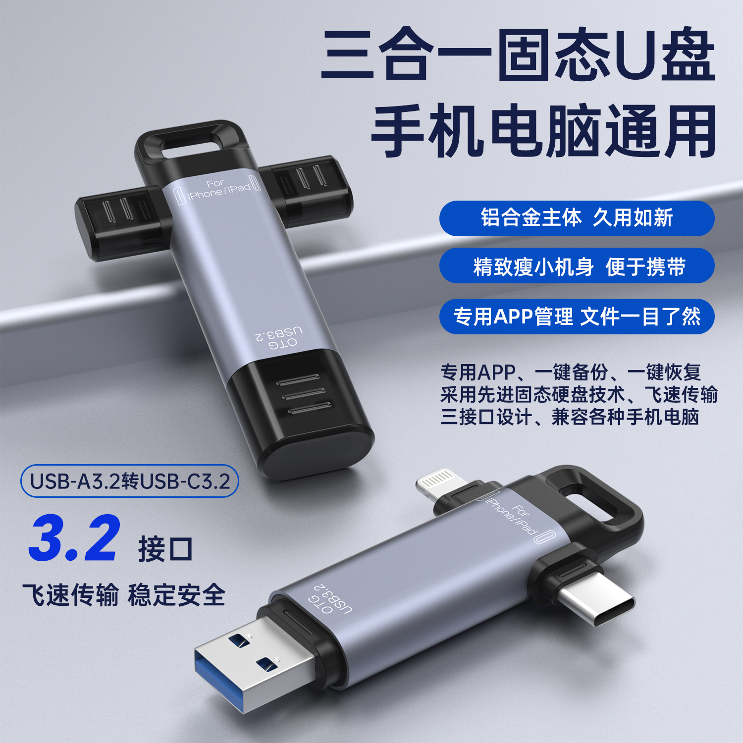 アップルの携帯電話に適したアンドロイドUSB3.2高速伝送速度三合一固体usb