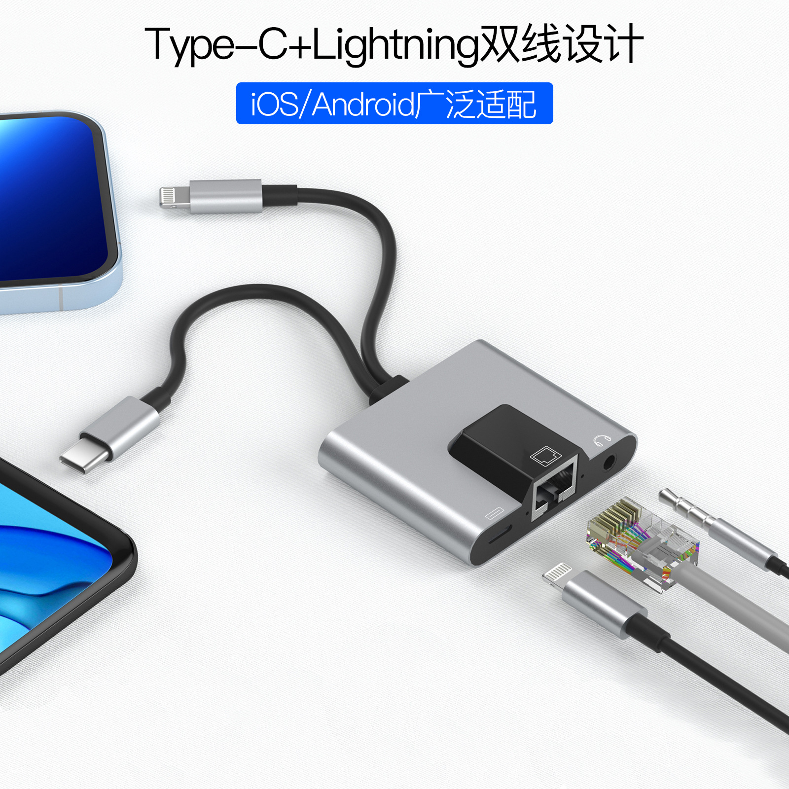 携帯電話接続type-c回転rj45百兆充電口付きlightning回転ネットワークカードイーサネットコンバータ