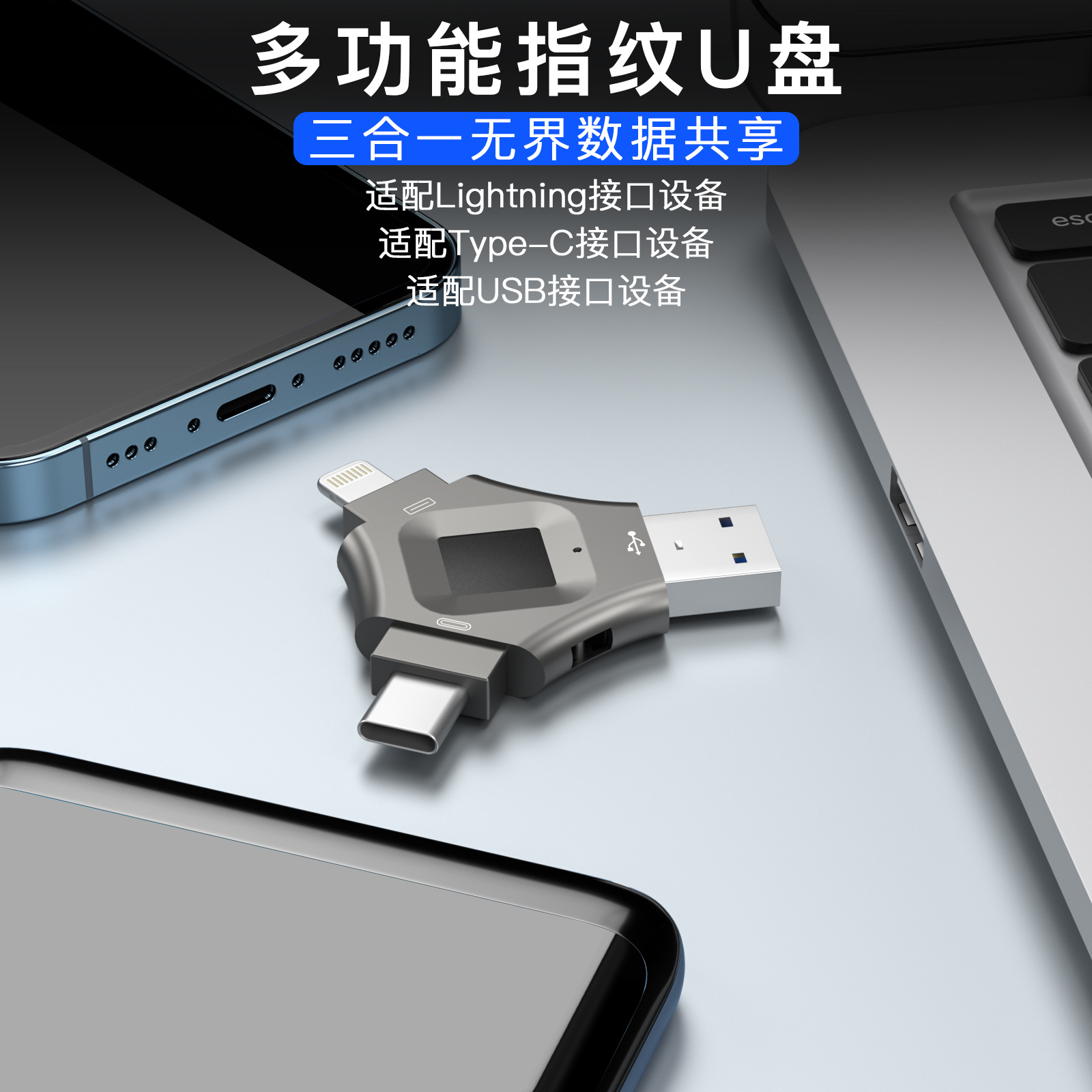 クロスボーダーtype-c指紋優盤暗号化usb 256g/512g指紋ロック解除携帯電話usb 3 in 1
