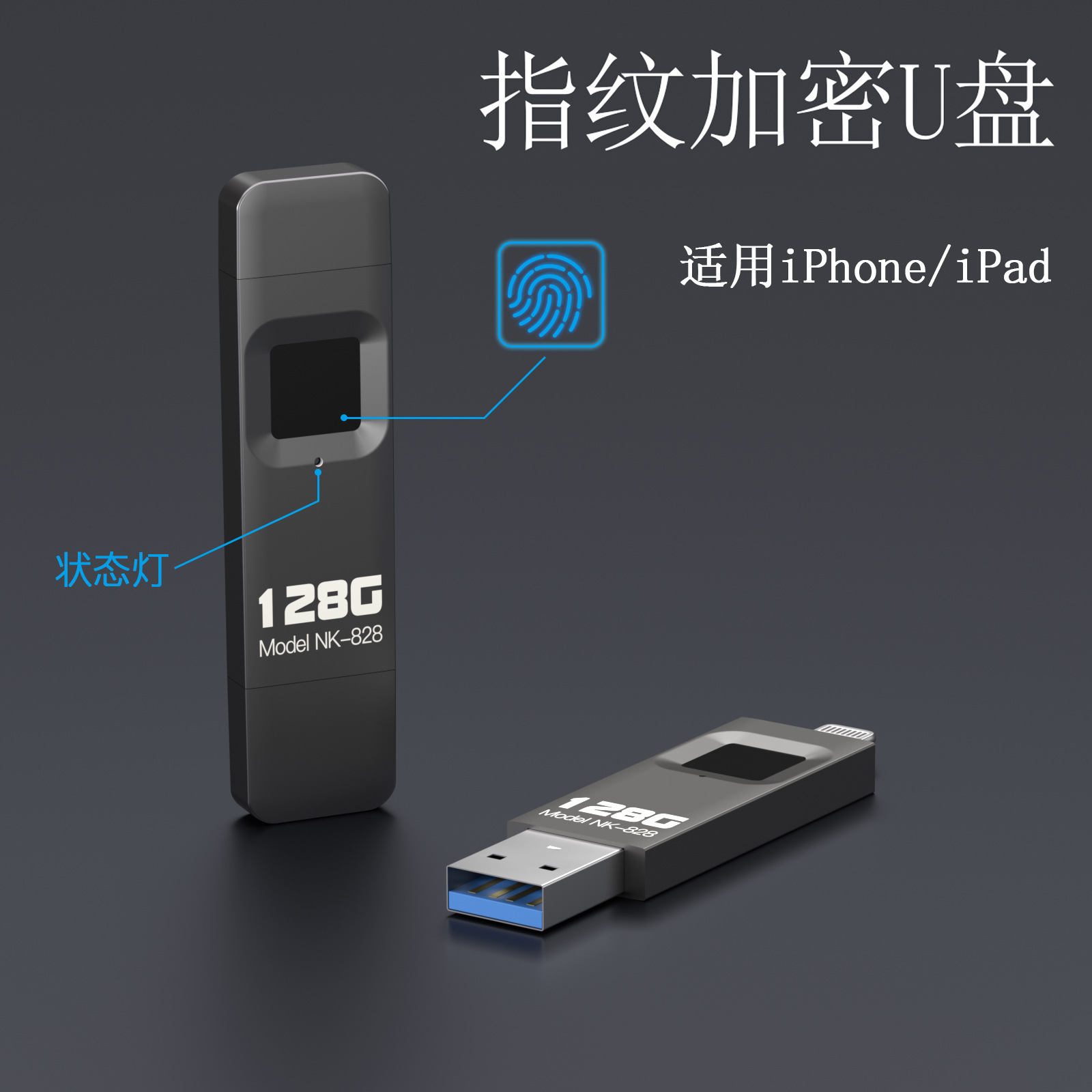 ソース工場指紋usbはアップルiphone/ipad暗号化usb携帯電話パソコン用256gに適用されている