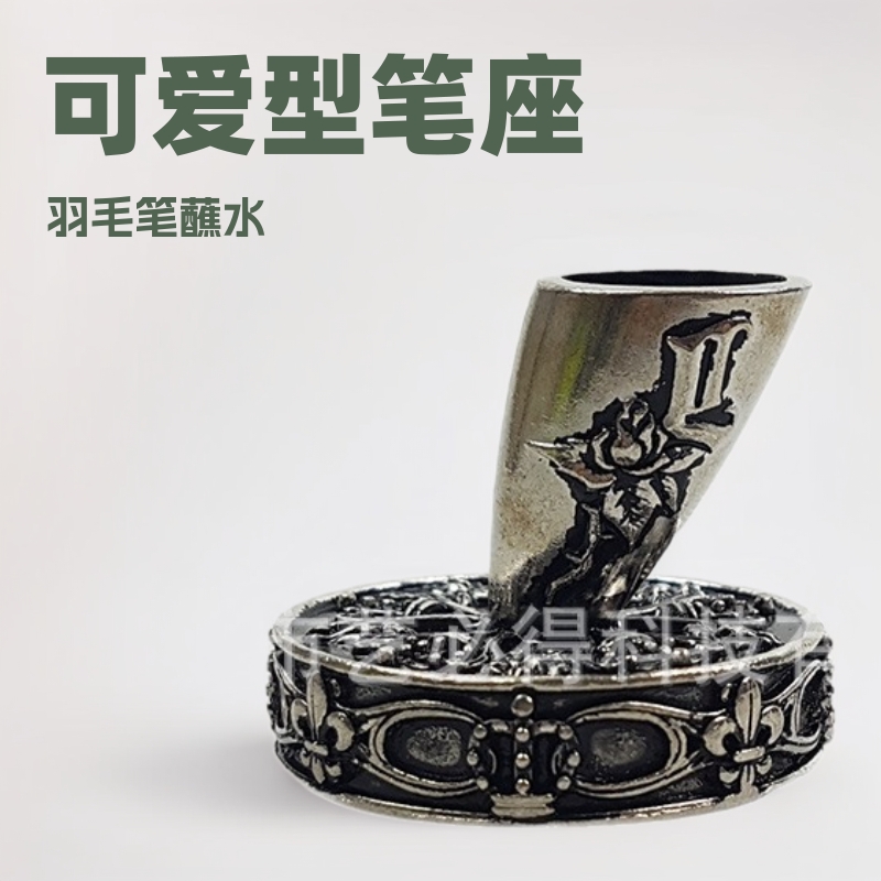 卓上固定金属ペン立て ミニ台座 美しい丸型台座 羽根ペン ペン立て ハロウィン用品