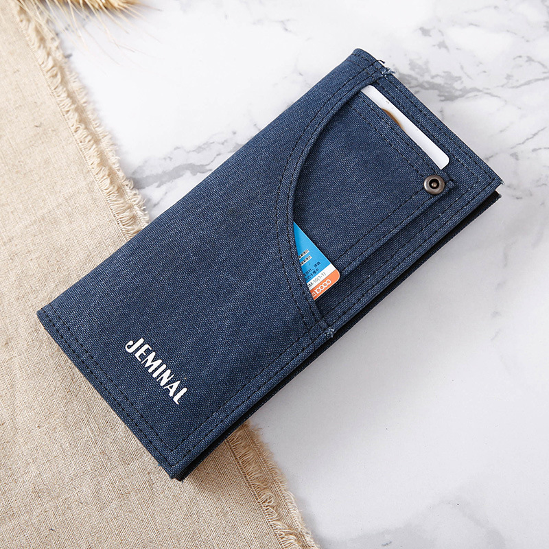 男性のファッションの亜麻のキャンバスの長い財布の湿っている青年の男子学生の超薄いファスナーの韓国版の個性の布の財布の長さ