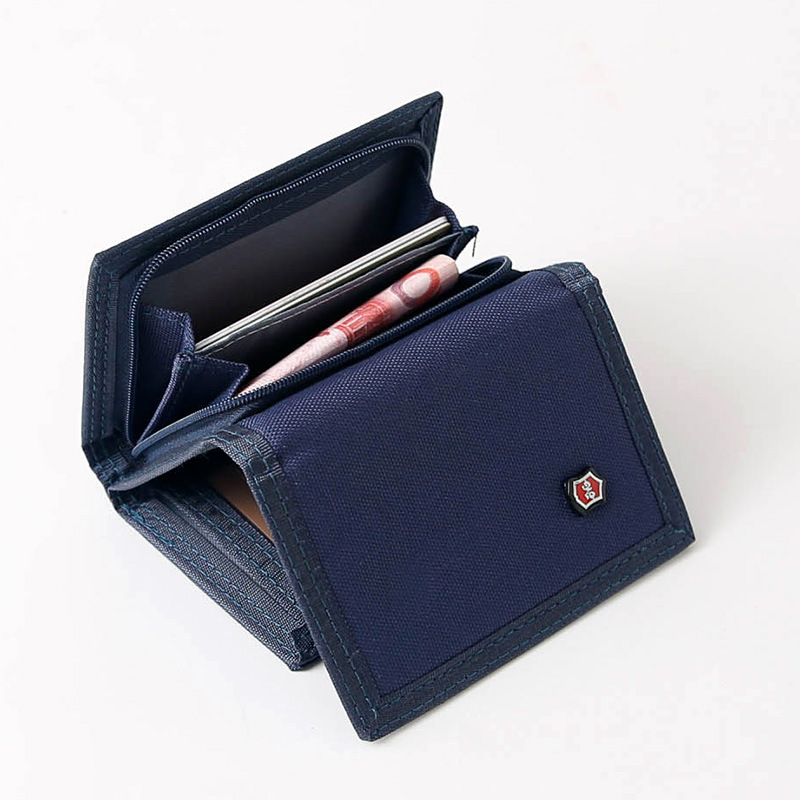 ジェイミーのキャンバスカジュアル男性用ショートタイプ3つ折財布学院男子学生用ダブルファスナー運動三つ折小銭入れ