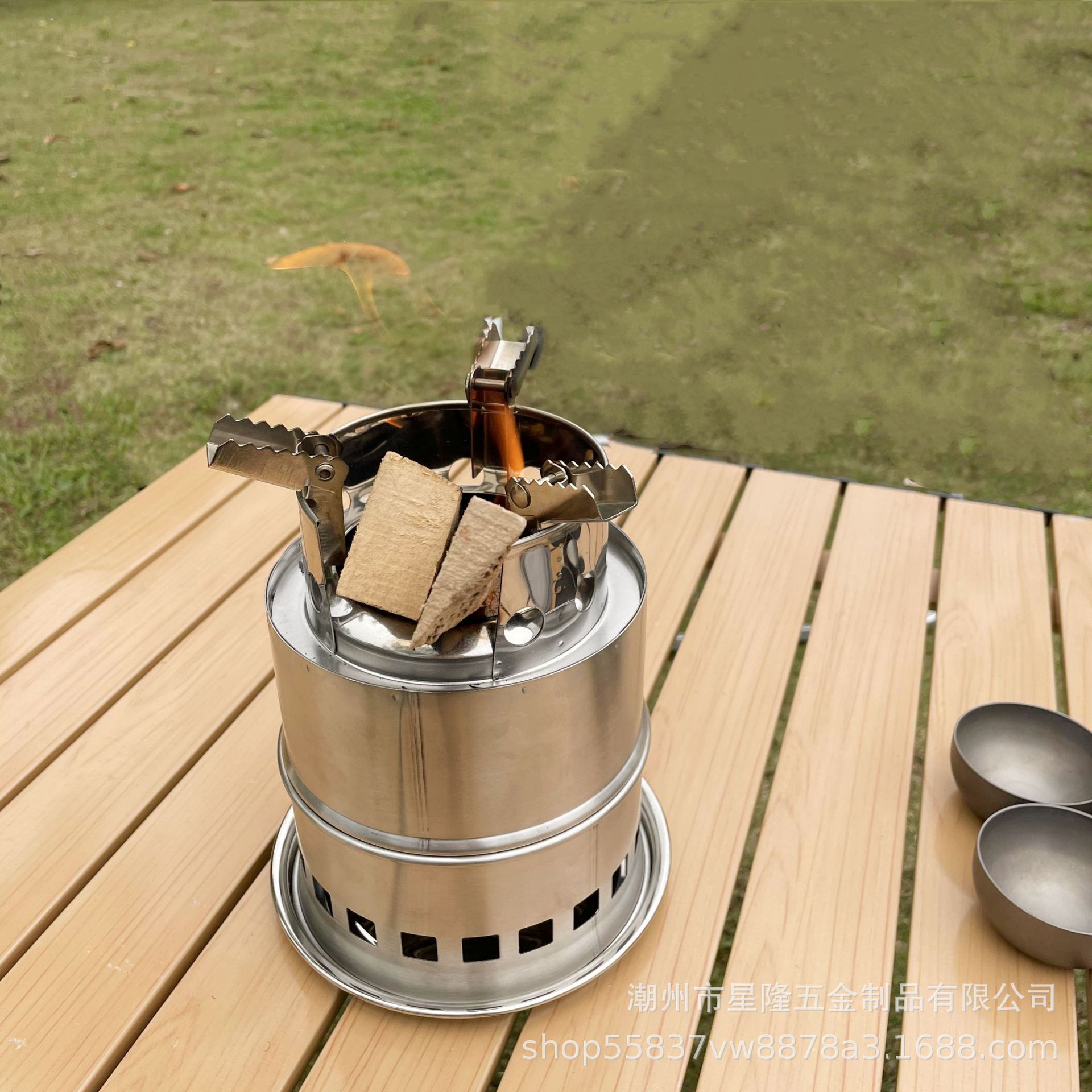 厚い屋外の組み合わせ薪ストーブステンレス携帯キャンプストーブの頭ピクニック二重折り畳みアルコールストーブ