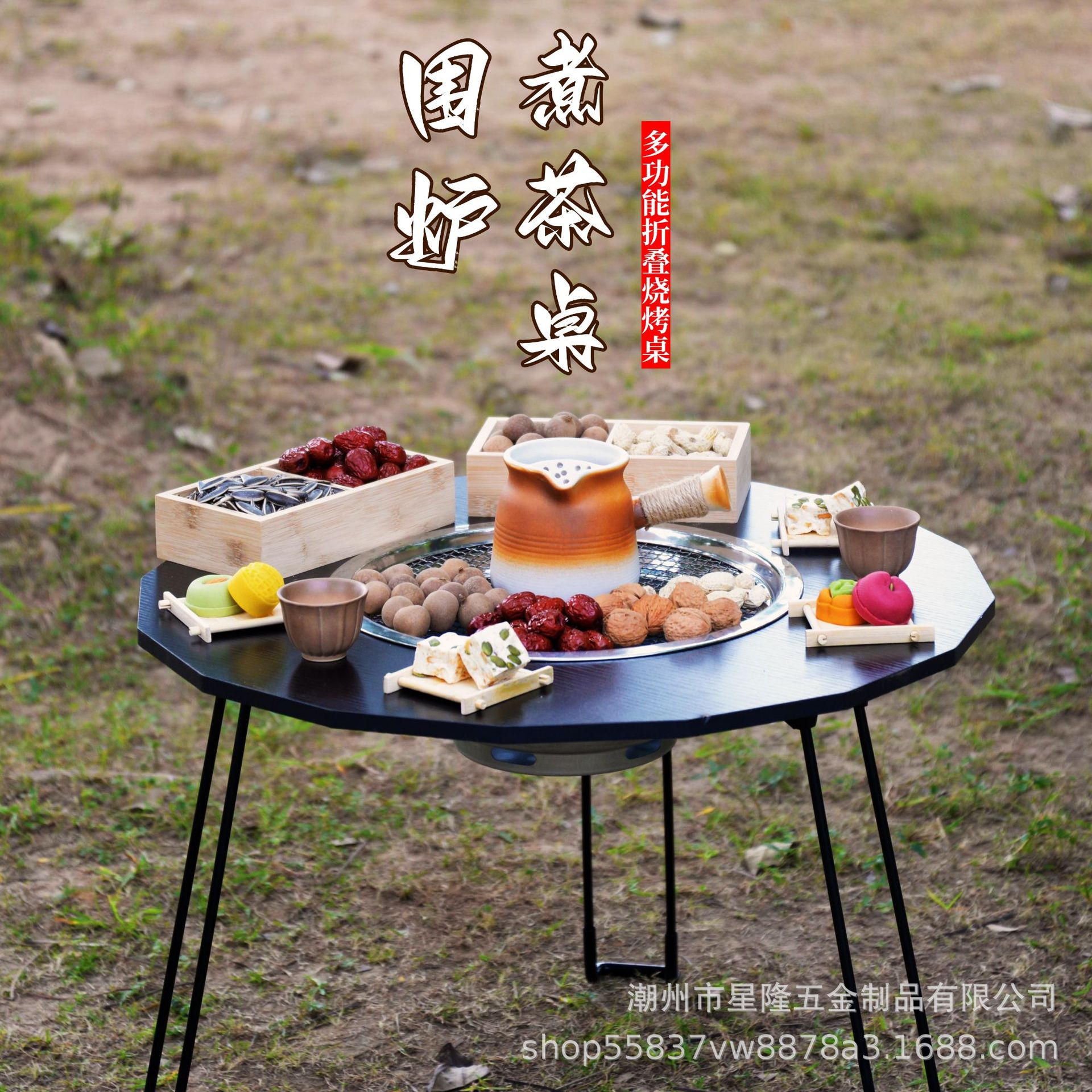 屋外折り畳み囲炉煮茶卓キャンプピクニックバーベキューストーブ多機能炭素炉携帯無煙収納テーブル