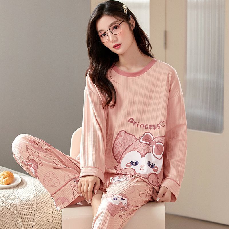 春秋レディースカーディガン長袖長ズボンパジャマカジュアル綿質少女漫画秋冬ホームウェアセット