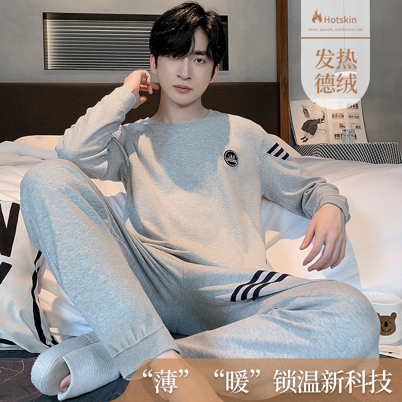 メンズ長袖長ズボンシンプルカジュアル丸首新作純綿春秋ホームウェアセット秋冬パジャマ男