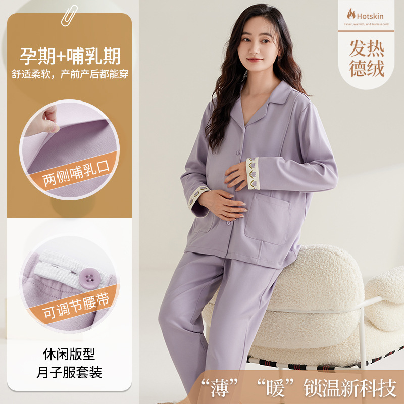 徳絨月子服秋冬妊婦長袖パジャマ哺乳カーディガン産後授乳女性ホームウェア保温