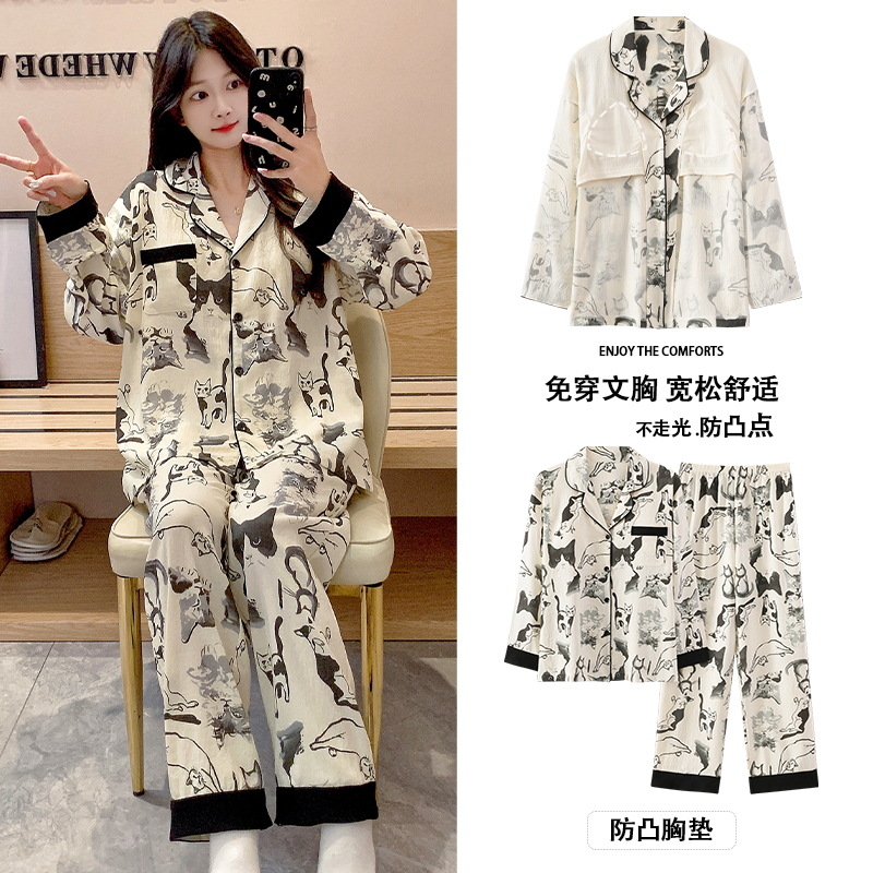 2024年秋冬新作漫画胸パッド付きパジャマ春秋モーデール長袖レディースルームウェアセット