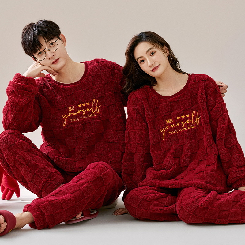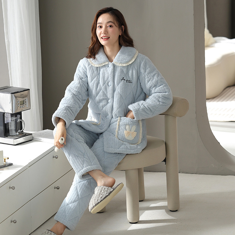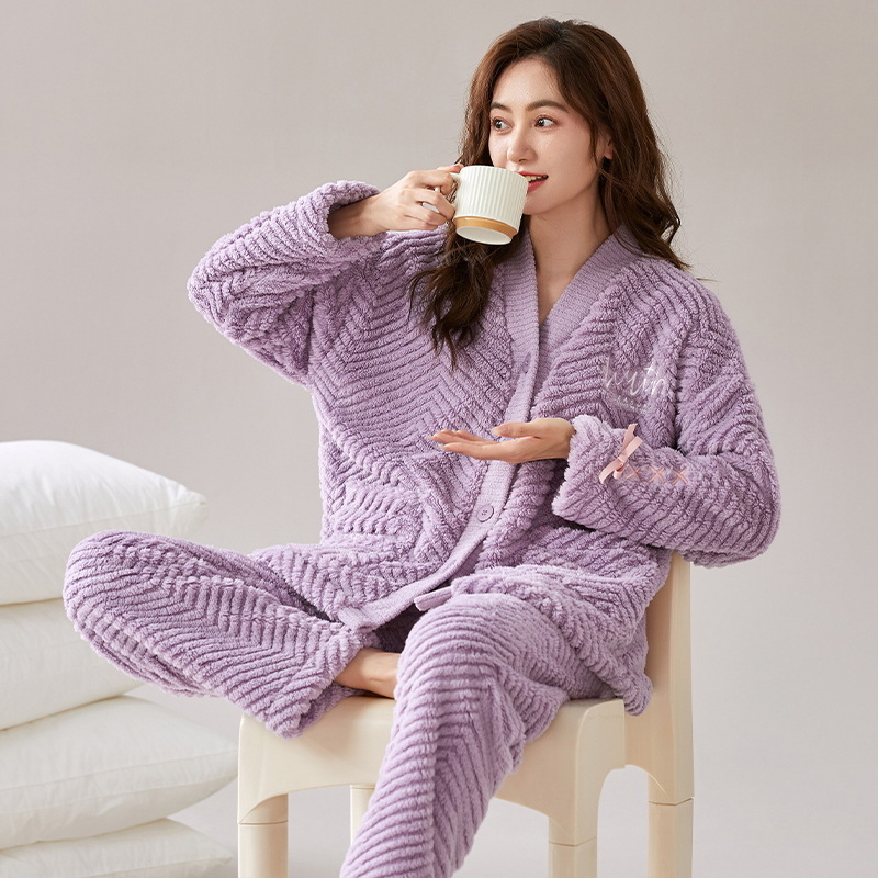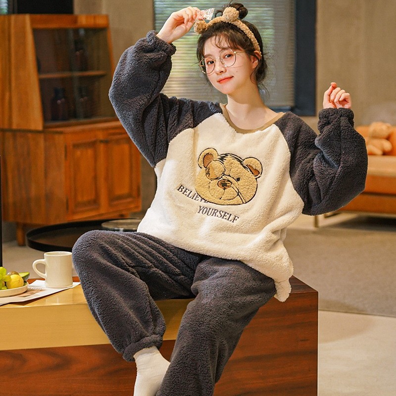 秋冬女性フランネルパジャマ丸首コーラルパイル保温学生女性ベルベット厚い冬ホームウェア