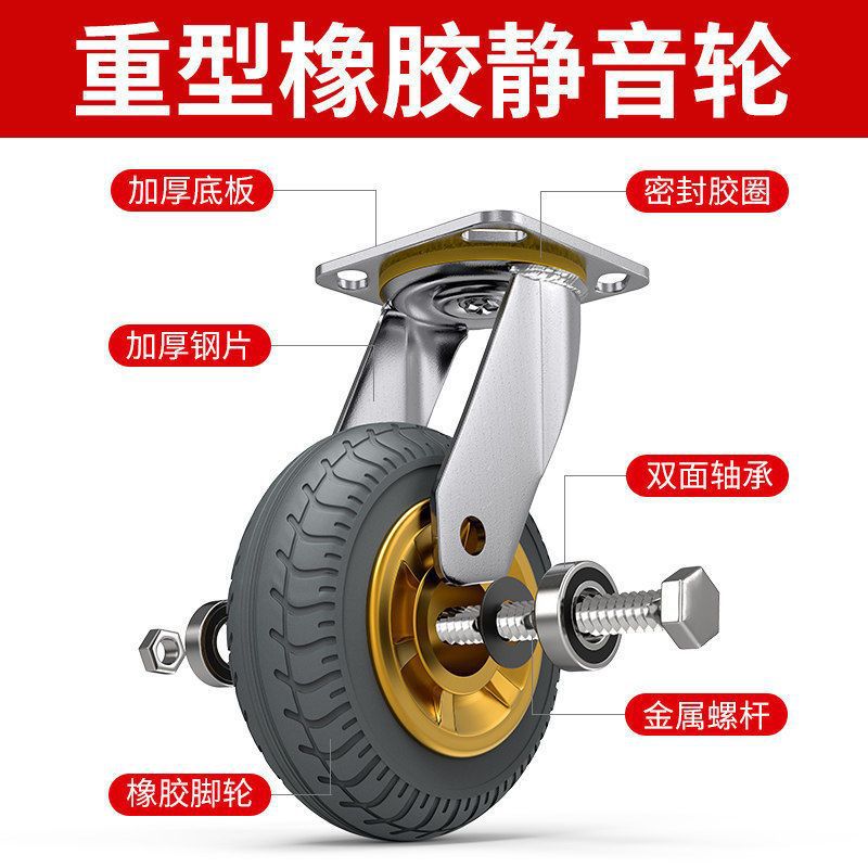 万能車輪ブレーキ付き静音キャスター台車車輪重4インチ5インチ6インチ8インチゴムホイール手押し車輪