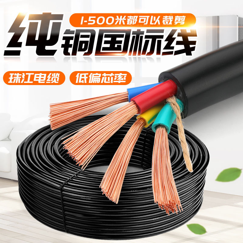 珠江純銅ケーブルRVV2コア3コア4コア1/1.5/2.5/4/6平方フレキシブル電線三相ケーブル