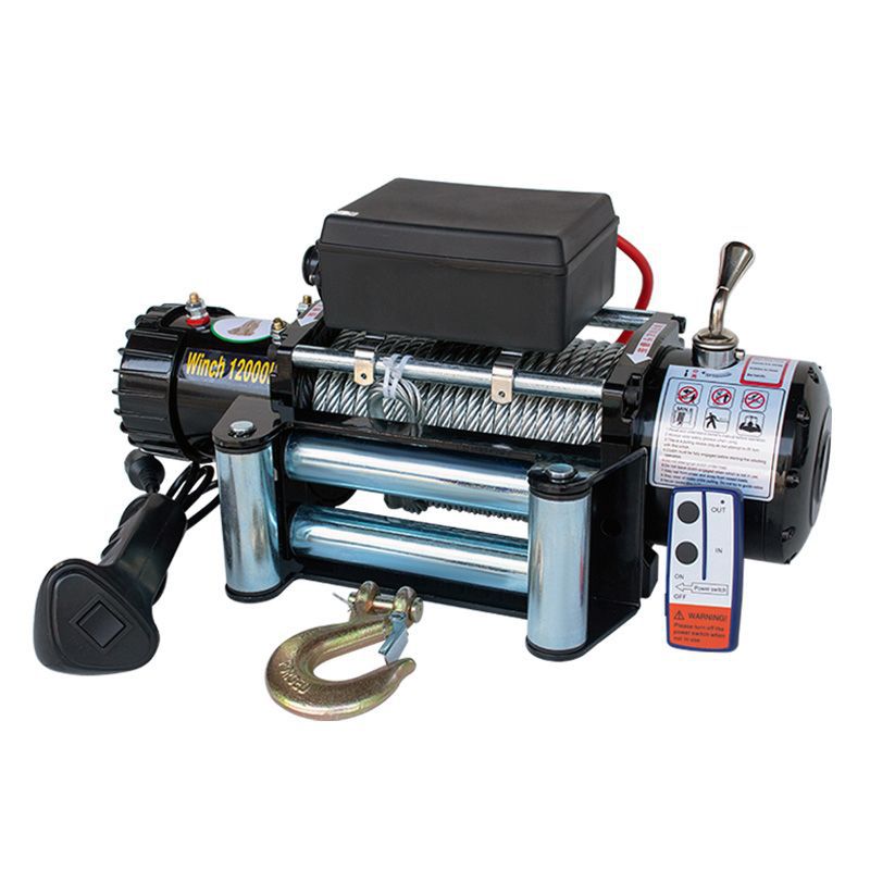 オフロード車は電動ウインチで遠隔操作して牽引クレーンを持ち上げて食糧を吊り上げる